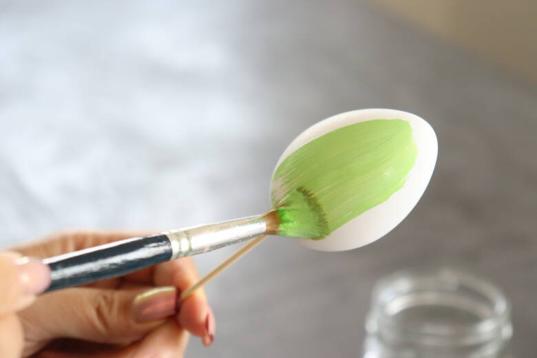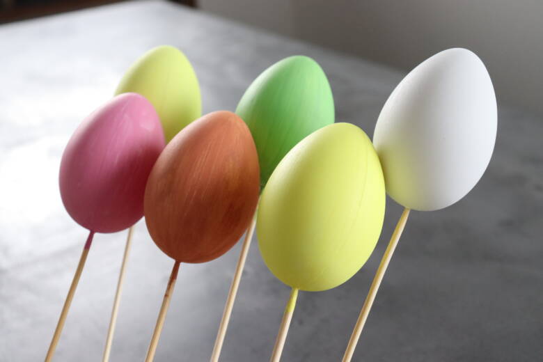 ②①の卵にアクリル絵の具で好きな色に塗り乾かします。