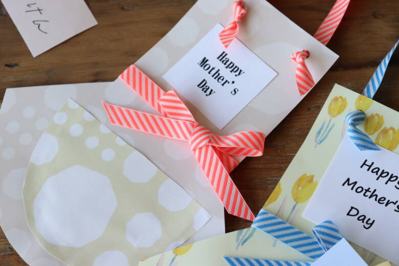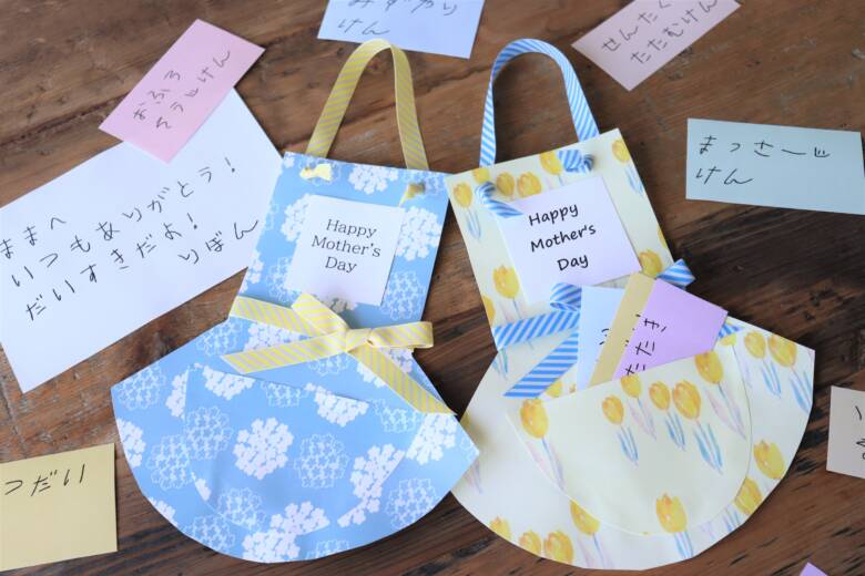 お子さんでも作れる、リバーシブルチロルリボン12mmを使った、エプロン付きお手伝い券を作りました!
