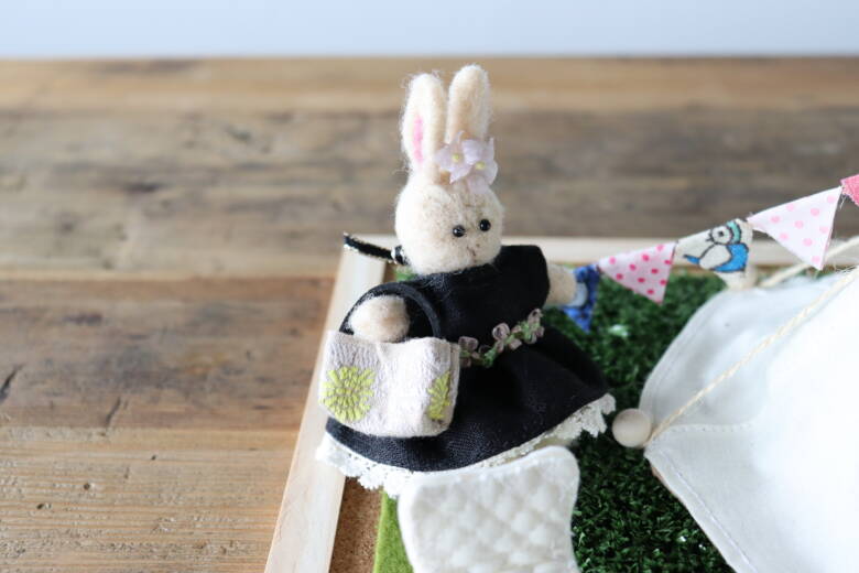 もちろん、うさぎちゃんも手作りです!羊毛を専用の針でチクチク刺して作ったそうです!