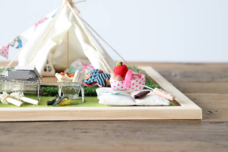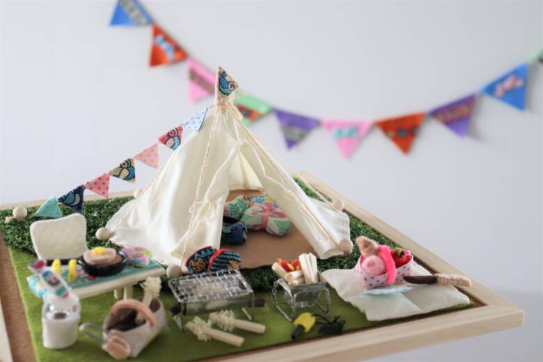 いつまででも見ていられる、レピヤンリボンを使って作ったミニチュアキャンプ場!