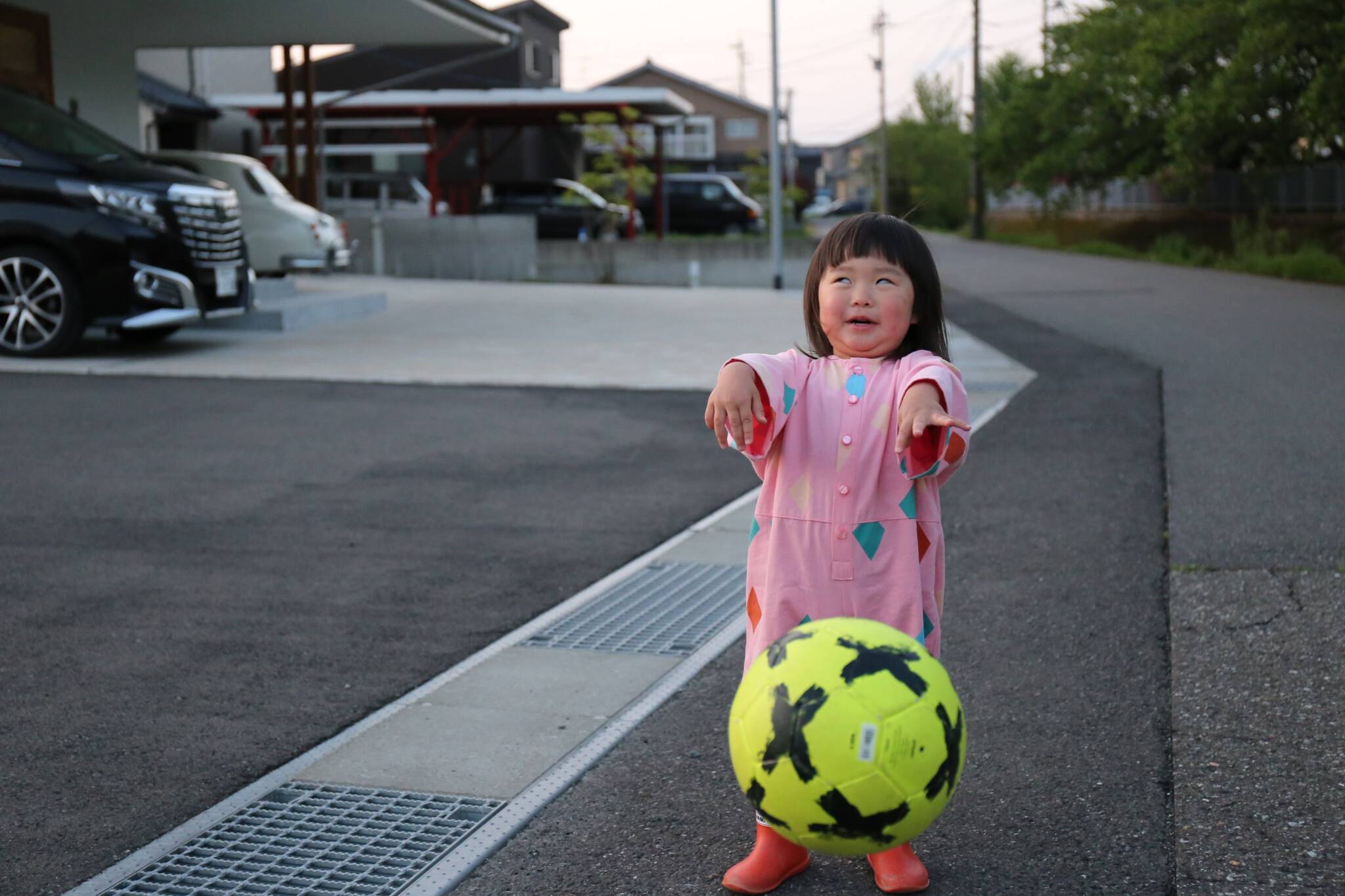 「ね~ね~、おとうさん、おそとでボールでへんな顔しよ~」といつも言ってきます。