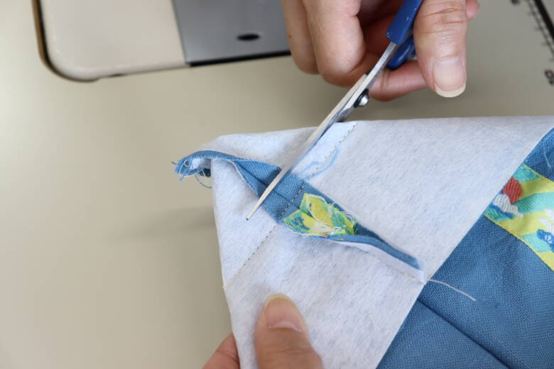 裏地も8㎝のマチを作り、余分な部分は切っておきます。