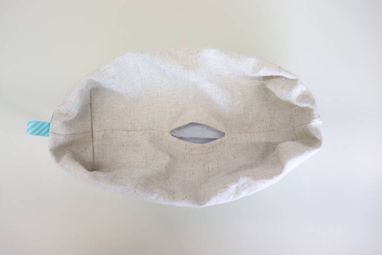 裏生地も中表にして「コの字」に縫います。底の部分で返し口分5㎝程を縫わないでおきましょう。