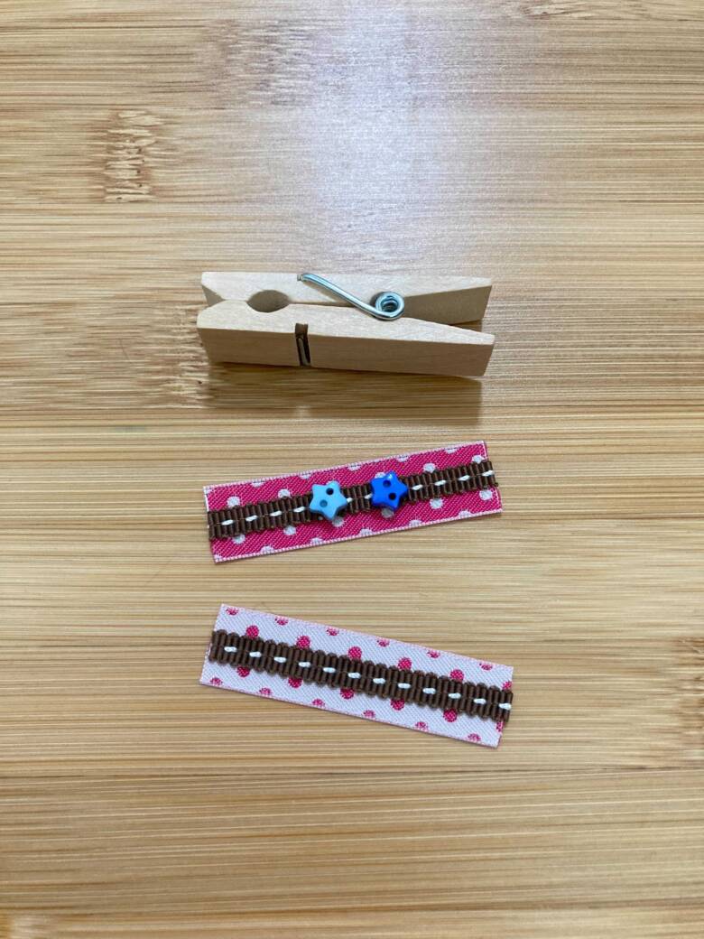 木製ピンチに貼る前に斜めにカットしたり、ボタンを可愛い色の糸で縫い付けても可愛いです♪